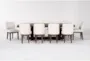 Enhance your dining experience with the Palazzo Brown Natural Rectangular Solid Pine Wood 106" Dining Table with Side Chair Set for 10. This rustic dining set features a spacious table that comfortably seats ten, perfect for hosting family gatherings or dinner parties. The natural finish of the solid pine wood adds a warm and inviting touch to your dining room or kitchen.