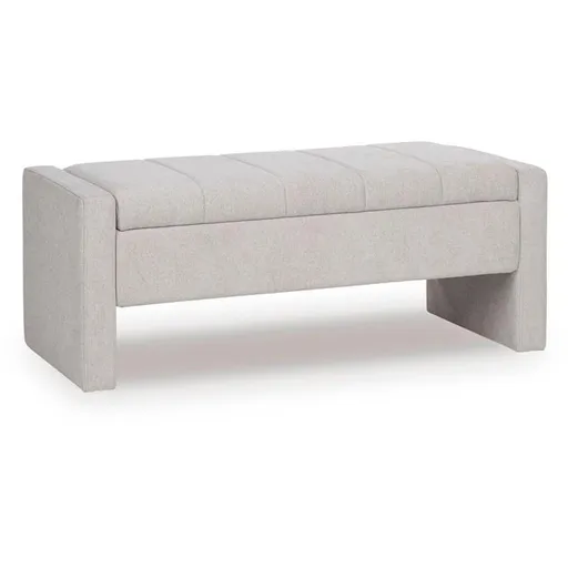 Whether gracing an entryway or sitting pretty in a main living area, this comfortably cushioned upholstered storage bench is packed with possibilities. Its clean, unfussy silhouette strikes a highly contemporary pose. Lift the hinged seat to reveal ample storage for your pillows, throws and everything in between.