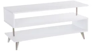 The Ashford Tv Stand provides a versatile low-profile media stand makes a space for everything. Fresh white finish and polished champagne metal frame craft a modern minimalist look. Slide this sleek media stand into your living room, dining area, or entry.