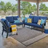 Get lost in the oversized comfort and structurally sound furniture of our exclusive Fairmont Collection. Feel the cool touch of the handmade aluminum frame, featuring a multi-step powder-coated and oven-baked clear coat finish. Each piece in this 3 piece sofa group is constructed by laser welding to create fully welded and braced frames with zero weld marks. The sofa, loveseat, and club chair feature PVC sling seat suspenion and include oversized deluxe Sunbrella® acrylic cushions. The textilene material's flexibility and sturdiness make it a comfortable material for seating.