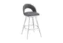 The Eberle 26" Swivel Counter Height Stool in Brushed Stainless Steel and Gray Faux Leather combines modern design with mid-century modern elements, making it a stylish addition to any home. Its 360-degree swivel function ensures maximum mobility and ease of use, while the brushed stainless steel frame provides a sleek and durable foundation. The gray faux leather upholstery offers a sophisticated look and comfortable seating experience.