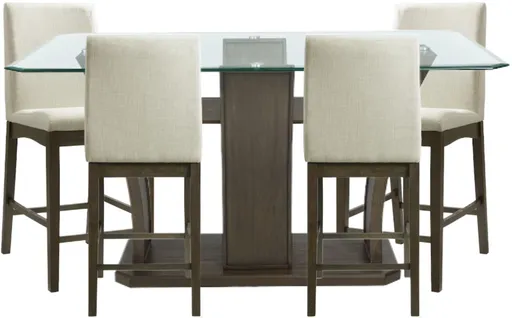 Bring effortless style and comfort to your dining area with the Dapper 5-piece cream/walnut counter dining set. Featuring a rich walnut table and cream upholstered counter chairs, this set combines warm tones and plush seatingperfect for casual meals and stylish entertaining.