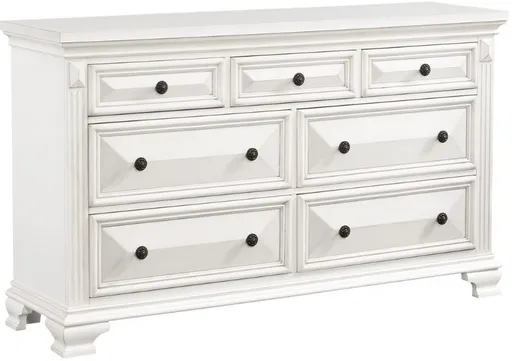 Add timeless elegance to your bedroom with the Calloway dresser. Featuring a soft antique white finish, classic moldings, and spacious drawers, this dresser blends traditional charm with modern function. Perfect for organizing clothes and accessories, it brings beauty and practicality to any youth, guest, or master bedroom.
