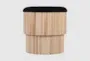The Sagano Black Tiered Storage Round Ottoman is a perfect blend of modern style and functionality. This handmade piece, crafted by skilled artisans, features a sleek black polyester fabric top and a natural wood base. Its round shape and neutral tones make it a versatile addition to any contemporary living space.