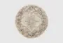 Enhance your living space with the 5'3" Round Fiber Rug in Denim Multi Faded. This modern rug features a stunning blend of colors including denim, khaki, butter, burnt orange, bright purple, rose, charcoal, white, and bright pink. Its botanical design and low pile make it perfect for indoor use, adding both style and comfort to your room.