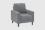 The Geoffery Grey Chair brings casual comfort to your living room with its inviting design. Upholstered in 100% polyester fabric, this chair offers durability and a soft touch. The supportive back and cushion provide a cozy spot to relax, while the track arms add a modern touch.