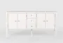 The Austen White 4 Door 3 Drawer 70" Sideboard Buffet offers a blend of traditional style and modern storage solutions. Finished in a white veneer, this piece is perfect for any dining room or kitchen. Featuring rubberwood construction, it is both durable and stylish.