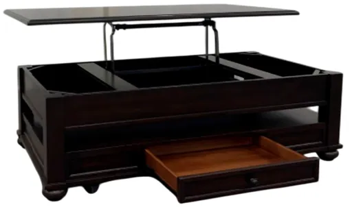 Accent your living space with the Wagner Rectangular Lift-Top Coffee Table’s elegant design. Made with quality solid wood and a warm, cherry veneer, this piece demonstrates the appeal of traditional style. Detailed elements like bun feet and decorative molding add touches of elegance.