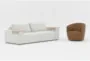 Enhance your living room with the Amallo Ivory White Fabric 108" 2 Piece Sofa and Santiago Vintage Caramel Leather Swivel Barrel Club Chair. The modern design and mellow ivory fabric create a soft and inviting atmosphere, perfect for relaxation and comfort.