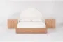 Catania Queen Wood Platform Bed With Arched Boucle Performance Fabric Upholstered Headboard 4 Piece Bedroom Set With 2 Nightstands | Oak