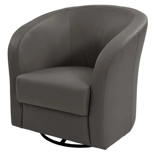 Sit down and swivel with the Delia Gray Accent Chair, upholstered in smooth iron gray leatherette with a barrel back, ensuring you're comfortable right away. This accent chair is the perfect match for a modern home.