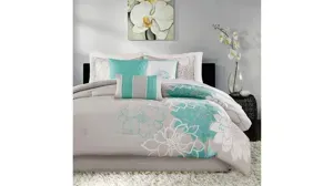 The Madison Park Lola Comforter Set brings beauty and grace to your bedroom. A large scale printed floral motif is displayed on the cotton sateen comforter and shams (1 for Twin/Twin XL Sizes) for a chic transitional look. Three decorative pillows with embroidered details and fabric manipulation add dimension to the top of the bed, while a solid bed skirt provides a clean finishing touch. This bedding set is also OEKO-TEX certified, meaning it does not contain any harmful substances or chemicals to ensure quality comfort and wellness.