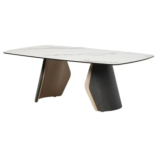 Bring character and style to your living room with the Ollie Coffee Table. Made with ceramic, tempered glass and metal, this sophisticated cocktail table features gold metal accents, a curved base, and a marble-inspired design. Modern and bold, it's sure to draw attention in the best way.