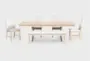 This Pollie Natural dining table set is perfect for your dining room, offering a farmhouse style that complements its natural wood color. The rectangular table extends to accommodate up to six people, making it ideal for both everyday meals and special occasions. The set includes a comfortable bench and upholstered side chairs, adding a touch of comfort and functionality.