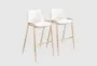 Enhance your modern living space with this Set Of 2 Donny White + Gold Upholstered 39" Barstools. These stylish barstools feature a sleek white and gold color scheme, perfect for adding a touch of elegance to any room. Crafted from high-quality plywood, steel, and 100% polyurethane, these barstools offer both durability and comfort.