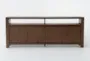 Enhance your living room with the Voyage Brown 80" Modern TV Stand by Nate Berkus + Jeremiah Brent. This entertainment center is designed to provide ample storage and organization for all your media needs. Crafted from cathedral oak veneers and solid hardwood, it offers a sturdy and stylish solution for your home.