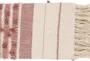 Enhance your living space with the Accent Throw Fiber Cotton Rose Stripe Rectangle by Surya. This contemporary throw combines rose, peach, and cream colors to create a warm and inviting atmosphere. Made with 85% cotton and 15% acrylic, it offers both softness and durability.