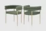 The Nielle Green Boucle Upholstered Dining Chair with Gold Leg Finish Set of 2 offers a perfect blend of modern and mid-century modern styles. These chairs feature a rich green boucle fabric that adds a touch of luxury to any dining space. The contemporary design is complemented by a sturdy iron metal frame with a brushed brass finish, ensuring both style and durability.
