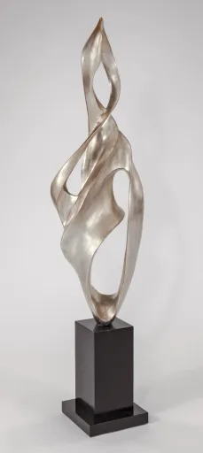 Make your decor as grand as your personality with this abstract floor sculpture. The unique design is finished in silver, and it sits on a black, shiny base. Whether your style is contemporary, glamorous, or modern, this sculpture will enhance any space it inhabits.