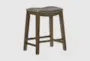 The Kinsale Grey Kitchen Stool is perfect for entertaining with a design that can easily tuck underneath an island, kitchen or bar. Featuring a saddle seat with faux leather upholstery and nailhead trim, it brings handsome rustic style to your space.