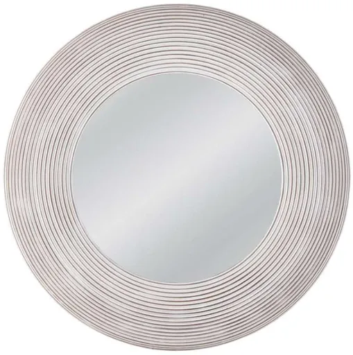 Spin Wall Mirror is a round decorative wall mirror. The wood mirror frame features a white wash finish. Includes two "D" ring attachment points for ease of access for hanging.