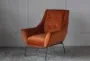 The Rust Velvet + Iron Leg Accent Chair is a stunning addition to any modern living space. Its rustic orange color and sleek black iron legs create a striking contrast that is sure to catch the eye. The chair's velvet material offers a luxurious feel, making it a comfortable and stylish choice for your home.
