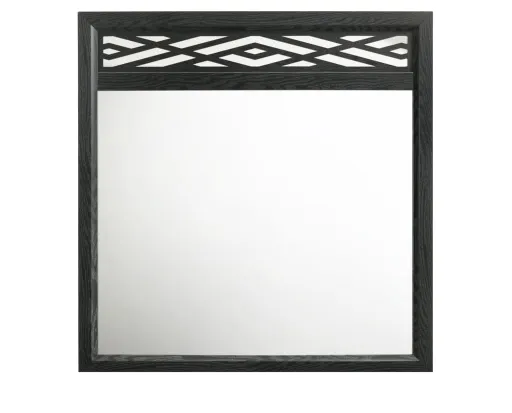 Experience elegance with this modern mirror encompassed in a black finish with an ornate geometrical design.