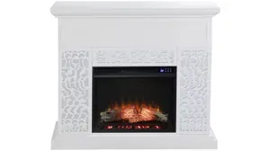 Add a touch of modern to your d_cor with this Philip Fireplace. A spacious mantel displays framed photos or a vase of flowers, while unique, lattice-inspired details highlight the mirrored surround. Perfect for warming your living room or dining area, this freestanding fireplace features flickering flames and embers that work with or without heat for enjoyment all year long. Give your home a cozy contemporary feel when you add this electric fireplace. <strong>Do not place TV on Mantel.</strong>