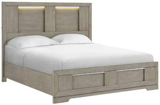The Kelis queen panel bed with LED lighting is a centerpiece for any bedroom. Its sleek design and sophisticated gray finish exudes elegance. With integrated led lighting, it offers both style and functionality, creating a cozy ambiance for rest and relaxation.