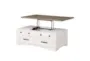 Introducing the Nantucket White Wood Rectangle Lift-Top Coffee Table, a perfect blend of functionality and farmhouse style for your living room. This versatile piece, crafted from poplar solids and birch veneers with an oak veneer top, offers ample storage and convenience with its lift-top feature. The cotton-white finish adds a soft, neutral touch, making it a timeless addition to any home decor.