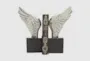 The 10" Silver Metal + Black Marble Split Wings Bookends are a modern, artistic expression of sleek lines and minimalist aesthetic. Made of aluminum, these bookends feature a metallic silver finish and a solid black marble base, providing a bold and neutral element to any space.