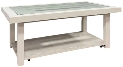 Define your living space with the transitional style of the Avalanche Coffee Table. Accented with glass that reveals rhythmic, geometric carvings, the tabletop’s broad surface is complemented by an equally spacious open shelf, extending your storage and display options.