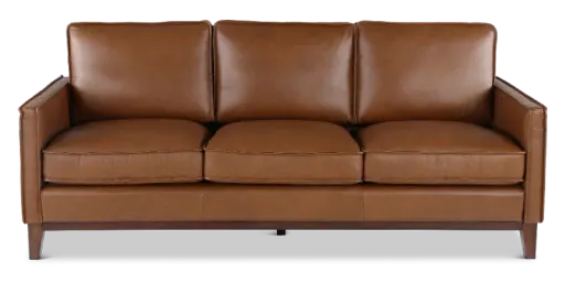Elevate your living space with the time-honored design and comfort of the Weston collection. This sofa is handsomely covered in soft saddle brown leather with timeless welting and a sleek track arm design. Soft yet supportive back cushions and feather-down seat cushions make unwinding hard to resist.