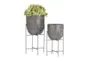 Enhance your living space with this set of 2 grey metal planters, perfect for both indoor and outdoor use. These planters come with a removable stand, making them versatile and easy to display in any setting. The contemporary design and neutral color make them a stylish addition to any decor.