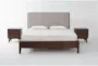 Draper Brown California King Wood & Upholstered 3 Piece Bedroom Set With 2 2-Drawer Nightstands | Panel