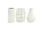 Enhance your decor with the Alabaster White Textured Ceramic Vase-Set Of 3. These modern, oval-shaped vases are perfect for adding a touch of sophistication to any room. Their subtle white color and textured ceramic material make them a versatile addition to various interior styles.