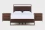 Sawyer Brown Walnut Queen Wood & Upholstered Storage Bedroom Set With 2 3-Drawer Nightstands | Platform | Storage | Panel