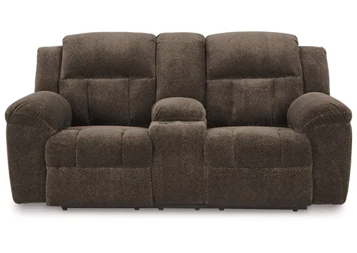 austere reclining loveseat with console