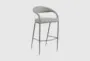 Enhance your dining or kitchen area with the Nord 30" Barstool. Featuring a modern design, this barstool combines matte black iron with light grey stain-resistant faux leather, making it both stylish and practical. The eucalyptus wood adds a touch of natural beauty, while the arms provide extra comfort and support.