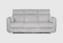 The Rayna Grey Plush Channeled 88" Power Reclining Sofa with USB is the perfect addition to your living room. Upholstered in mega grey 100% polyester, this casual sofa combines comfort and functionality seamlessly. With a built-in USB port and a tight back design, it offers both convenience and a chic look.