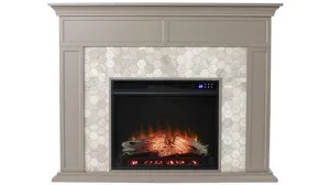 Modernize your media room with this Payton Fireplace. Hexagon shaped tile and authentic marble join together to craft a look that's both homey and elegant. Glowing faux fire logs add ambiance with flickering LED flames andlifelike embers, with or without heat. Add grace and charm to your family living area when you add this real marble fireplace to the heart of your home. <strong>Do not place TV on Mantel.</strong>