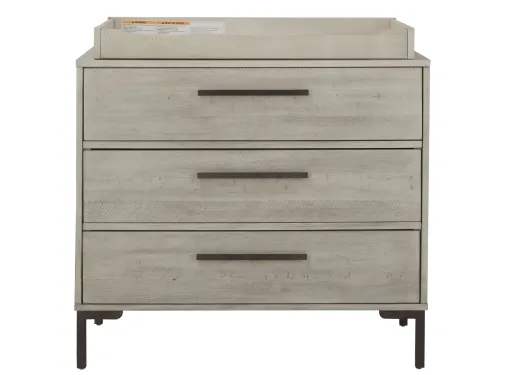 With high style for a lovely babys room that doesnt require a lot of square footage, look no further than the Greyson dresser with detachable changing tray. With three roomy drawers, brushed willow finish and metal hardware, this dresser is a neutral choice that will suit your family for years to come. The removable changing tray creates a functional changing station for as long as you need it.