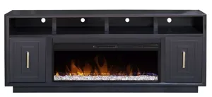 Your Sunset 84" Console has a splash of contemporary panache and speaks to those who prefer smooth and shiny over rough and rustic. Holds up to a 95" TV and offers plenty of open and inner storage for all of your media gear and stuff. Boasts a room warming 42" fireplace insert with clear crystals and traditional log set with embers to keep you toasty while binge watching your favorite TV show or movie, Sunset fits the look of todays homes.