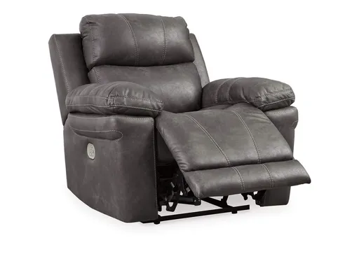 Coming in hot! It’s the Erlangen power recliner. Top-of-the-line faux leather fabric gives you the upscale look you want for less. Not to mention it feels incredible. Take a seat and raise your legs with one easy push of a button. The extended ottoman provides extra length for relaxing your legs. Want to watch TV or read in comfort? Easily fix your view with the power adjustable headrest. Complete with dramatic, jumbo stitching, this piece is out to capture your heart with style and comfort.