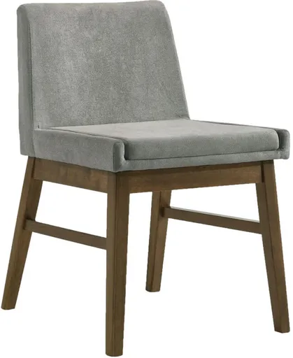 Add a touch of sophistication to your dining space with the Weston dining side chair. Featuring a rich walnut finish and soft smoke-gray upholstery, this chair offers both style and comfort. Its sturdy frame and elegant design make it the perfect complement to any dining table.