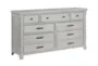 The Dixie 9-Drawer Dresser combines rustic charm with cottage style, making it a perfect addition to any bedroom. Crafted from light gray wood, this dresser features a sturdy MDF board construction with pine wood species. The dresser offers ample storage with its 9 drawers, including 7 dovetail drawers with ball bearing glides and a bottom drawer with cedar veneer. The flat black tone knobs and bar pulls add a touch of elegance, and best of all, no assembly is required.