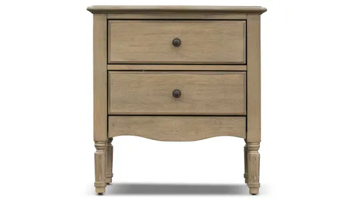 Our Amelia bedroom collection blends rustic elegance with modern functionality. Crafted from Pine solids and Acacia veneers, this collection showcases a beautiful brushed Oak finish that enhances its natural wood grain. The bed features a luxurious upholstered and tufted headboard, paired with an upholstered footboard for added comfort and style. Our Amelia case goods are designed for durability with French and English dovetail joints, while the ball-bearing glide system ensures smooth drawer operation. Painted interior drawers add a touch of sophistication, and the nightstand includes a convenient power pack with USB connections, making it perfect for modern living. Sink into a dreamy sleep with our Amelia bedroom collection.