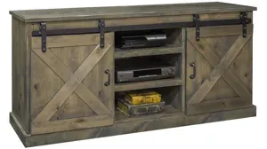 The Farmhouse 66" TV console is highly reminiscent of the industrial revolution, steeped in age old tradition and style. Designed for today's electronics, the features are thoughtfully blended into the design. Make a statement in your home theater with this collection!