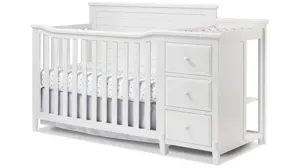 The Berkley Panel Crib & Changer is a beautiful panel all-in-one crib and changer with storage drawers and shelf. Features sturdy construction in a durable painted finish.