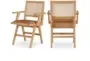 Gabby Cognac Vegan Leather Fabric Seating With Rattan Back Rest Dining Armchair Set Of 2 | Beech | Woven | Furnzy.com - Shop local furniture stores in one place